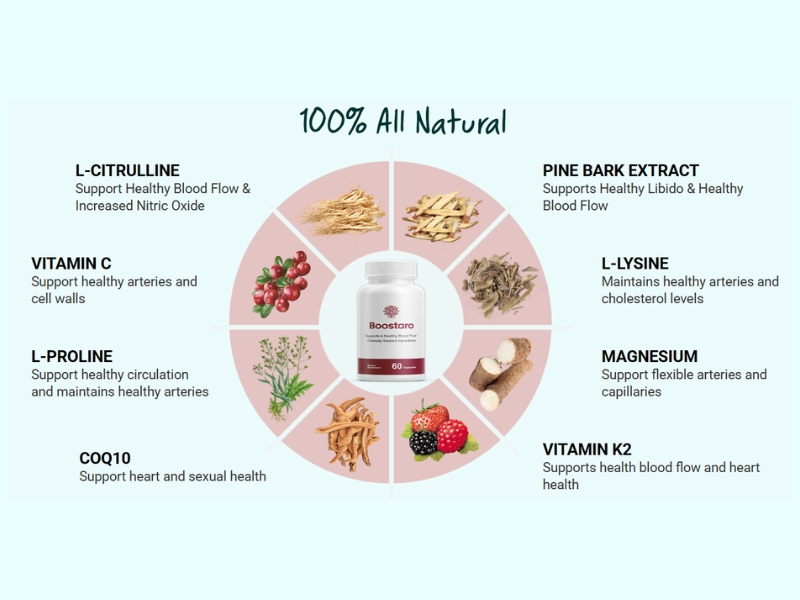 The Boostaro formula is created using natural ingredients that work to restore a healthy capillary. The ingredients together eliminate all unwanted substances from the capillary and boost blood flow in the body by increasing the production of nitric oxide. This will help to enhance your body’s function and masculinity.